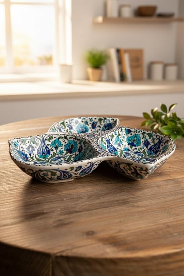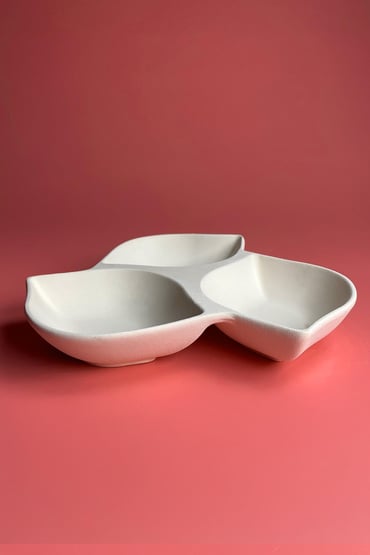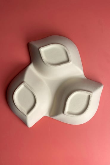 Deze 3-vaks snack schaal van biscuit aardewerk heeft een elegant bladvormig ontwerp, waarbij drie compartimenten samenkomen in één geheel. Hierdoor is dit model ideaal voor zowel creatieve keramiekprojecten als functioneel gebruik na afwerking. Dankzij het gladde biscuitoppervlak is deze schaal zeer geschikt voor onderglazuurdecoratie, illustraties en keramisch glazuur. Na het glazuren en afbakken ontstaat een duurzame keramische schaal die geschikt is voor dagelijks gebruik.