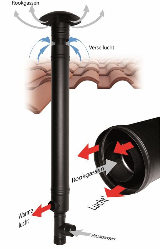 Een kwalitatief goede, concentrisch rookkanaal, gemaakt van hoogwaardig RVS. Daarnaast een goede prijs/kwaliteit verhouding.