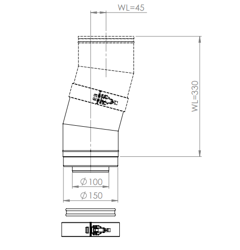 Dru Bocht RVS Ø150/100 15°, gesegmenteerd.