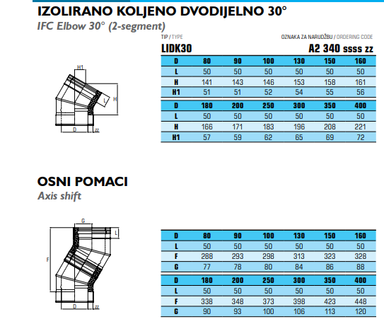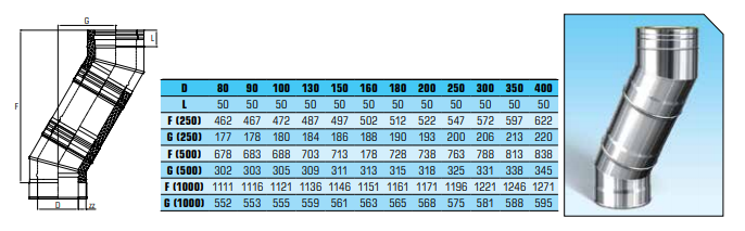 Dubbelwandig rookkanaal RVS, bocht 30° graden, diameter Ø200-250