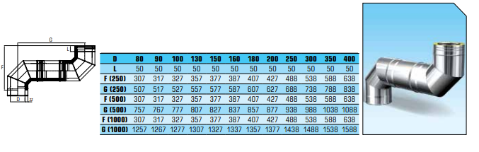 Dit dubbelwandig geïsoleerde rookkanaal is uitermate geschikt om uw rookkanaal van een 90° bocht te voorzien. Het betreft een dubbelwandig geïsoleerde bocht van 90° met een binnendiameter van Ø100mm. Gemaakt van hoogwaardig RVS AISI 316L. De bocht is bestand tegen 600°C. Daarnaast is dit rookkanaal van de nodige keurmerken voorzien, zoals het CE Keurmerk en TÜV keuring. De 90° bocht is voorzien van 0.5mm dik RVS wanden en word standaard geleverd met klemband.