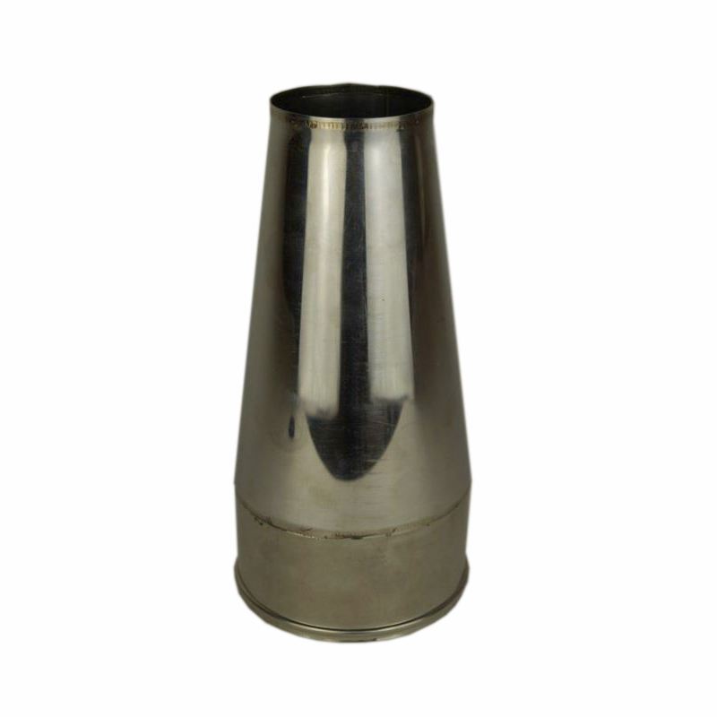 Conische open kap voor een vrije uitmonding van het dubbelwandige rookkanaal. Zeer gemakkelijk te monteren. Gemaakt van hoogwaardig RVS AISI 316 L. Bestand tot 600°C. Uiteraard voorzien van de vereiste keurmerken CE Keurmerk en TÜV keuring. Een klemband leveren wij standaard mee bij dit product. Levertijd bedraagt voor dit product ongeveer 2 weken
