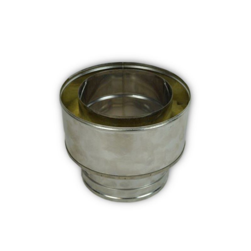Dubbelwandig RVS rookkanaal Ø130/180mm plug. Aansluitstuk van dubbelwandig Ø130/180 naar enkelwandig Ø130 vrouwelijk.