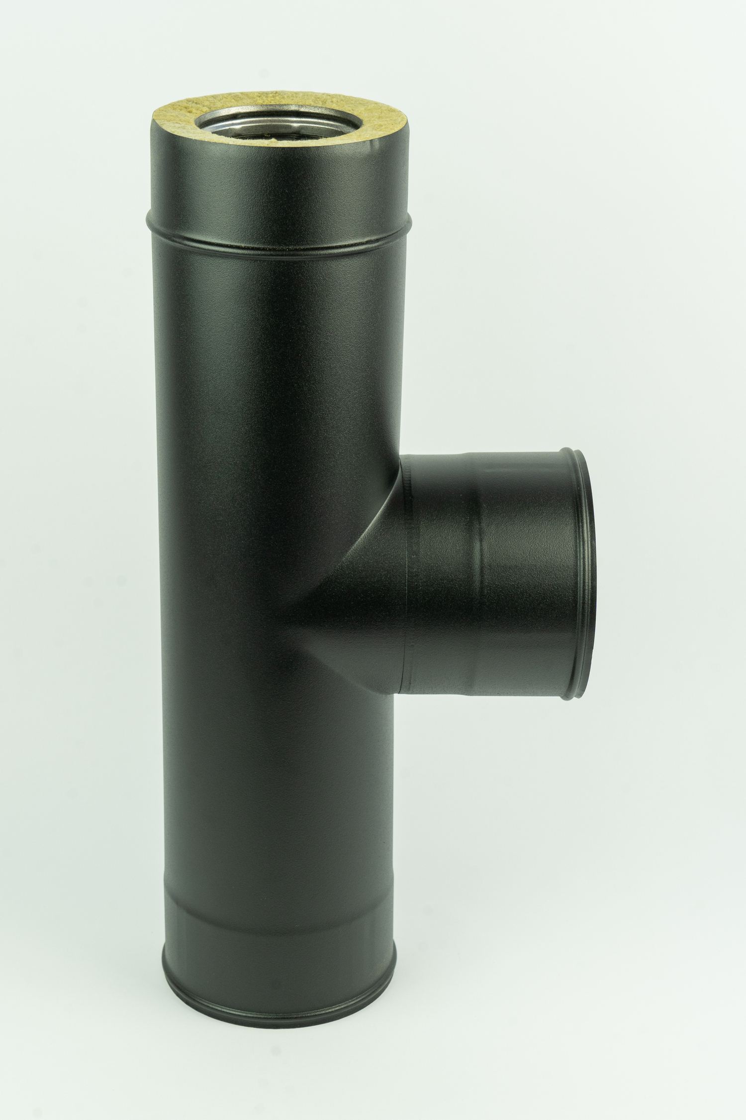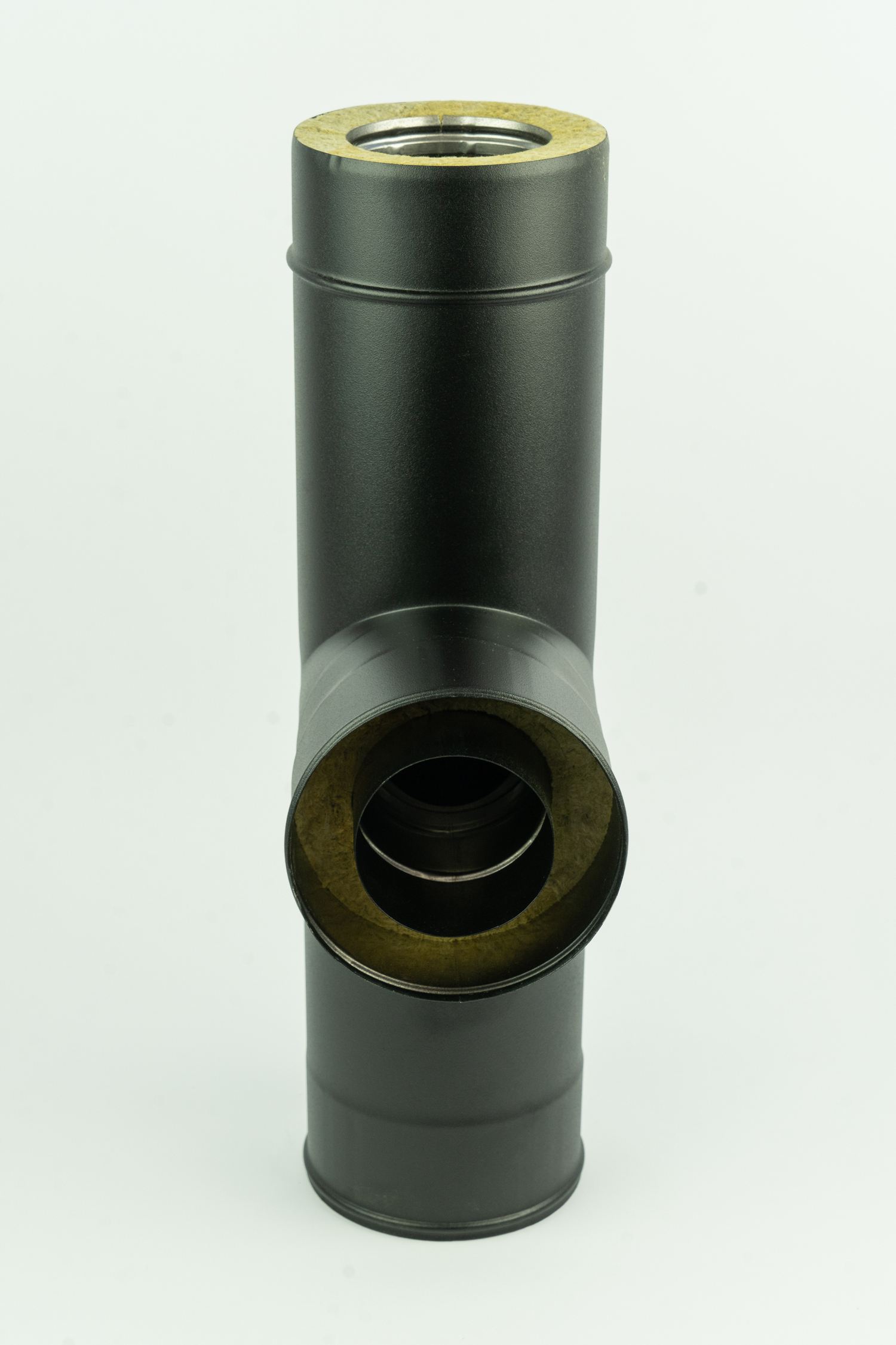 Dubbelwandig rookkanaal RVS, T-stuk 90° graden, diameter Ø80-130