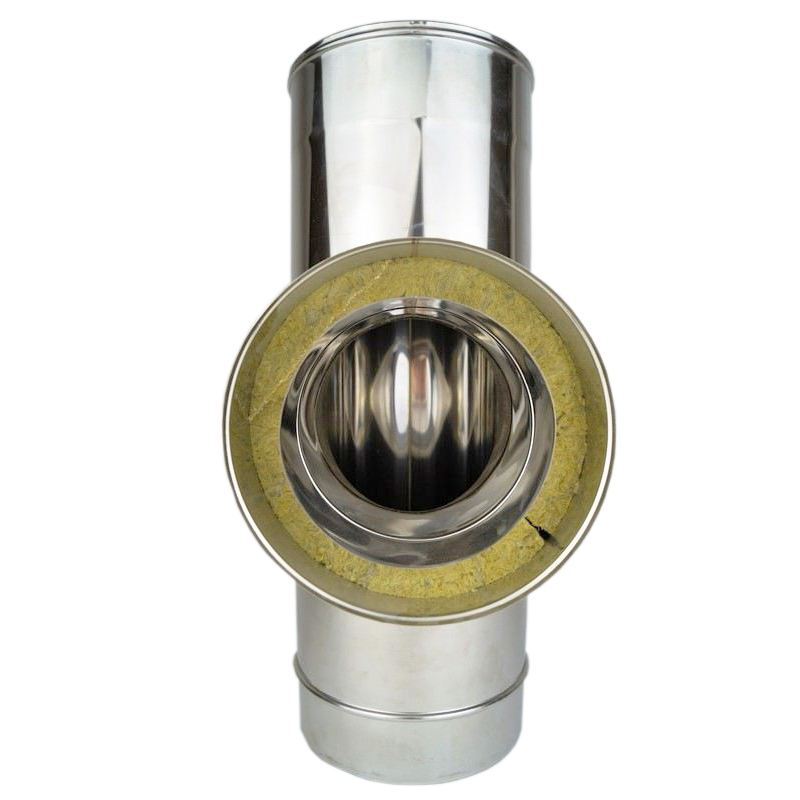 Dit dubbelwandig geïsoleerde T-Stuk van 90° is geschikt om bijvoorbeeld achter op uw kachel aan te sluiten met aan de onderkant een condensafvoer. Het betreft een dubbelwandig geïsoleerde T-Stuk van 90° met een binnen diameter van Ø200mm. Gemaakt van hoogwaardig RVS AISI 316L. Het T-Stuk is voorzien van 0.5mm dik RVS wanden. Daarnaast is de buis van de nodige keurmerken voorzien, zoals het CE Keurmerk en TÜV keuring. Het T-Stuk 90° is bestand tegen 600°C. Word standaard geleverd met klemband, condensdop en blindwartel.