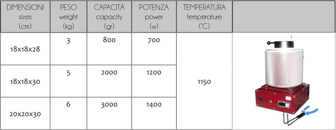 Deze elektrische smeltoven van Luigi Dal Trozzo is van zeer hoge professionele Europese kwaliteit.