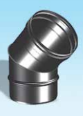 Enkelwandig rookkanaal RVS, bocht 45° graden, diameter Ø160