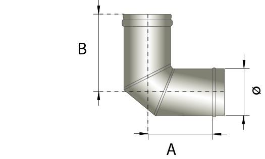 Enkelwandig rookkanaal RVS, bocht 90° graden, diameter Ø200