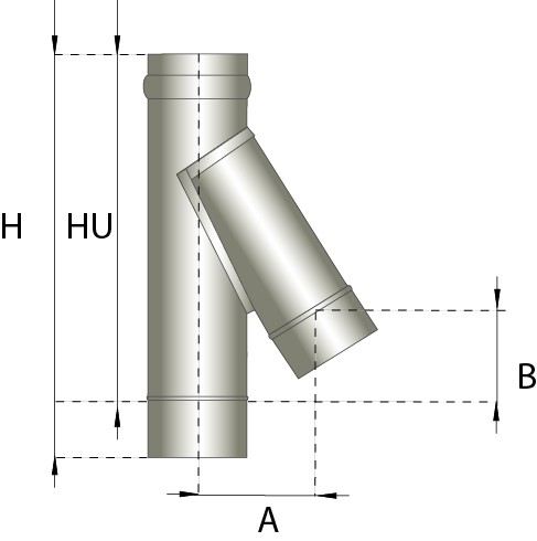 Enkelwandig rookkanaal RVS, T-stuk 135° graden, diameter Ø150