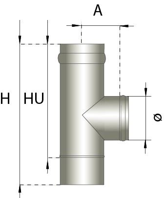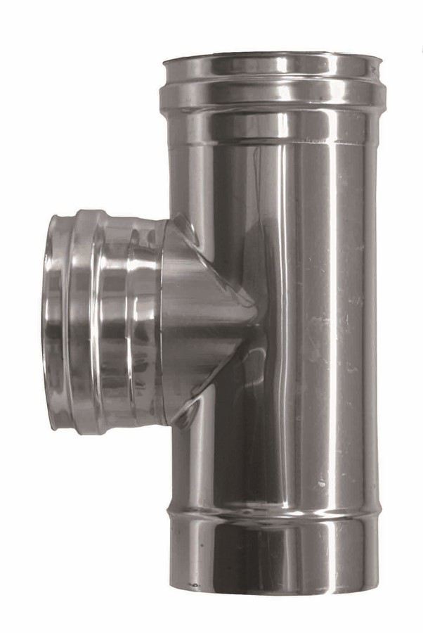 Enkelwandig rookkanaal RVS, T-stuk 90° graden, diameter Ø150 (mannelijk of vrouwelijk)