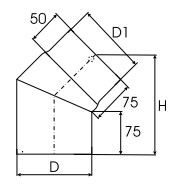 Kachelpijp dikwandig staal, diameter Ø120, 45° bocht, geschikt voor temperaturen tot 600 graden.