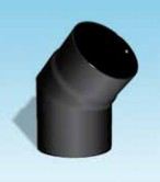 Kachelpijp dikwandig staal, diameter Ø120, 45° bocht, geschikt voor temperaturen tot 600 graden. 2mm dik, zwart.