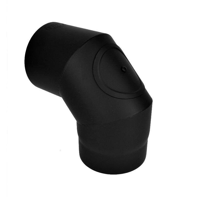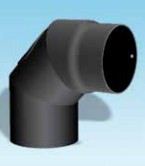 Kachelpijp dikwandig staal, diameter Ø130, 90° bocht, 3 segment, geschikt voor temperaturen tot 600 graden, met inspectieluik.