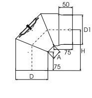 Kachelpijp dikwandig staal, diameter Ø140, 90° bocht, 3 segment, geschikt voor temperaturen tot 600 graden, met inspectieluik.