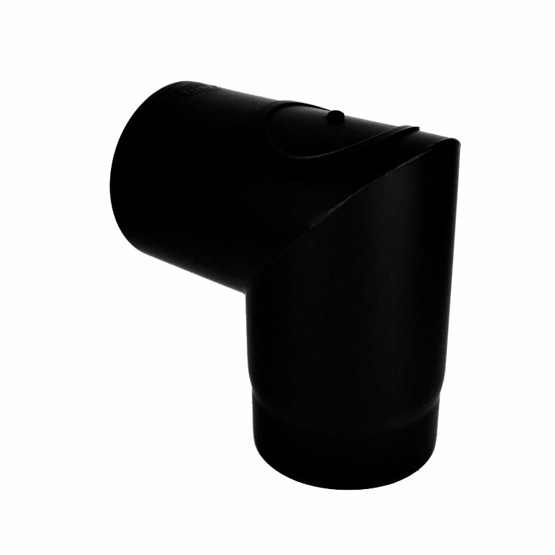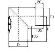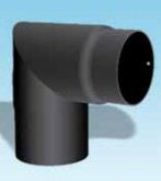 Kachelpijp dikwandig staal, diameter Ø150, 90° hoek, geschikt voor temperaturen tot 600 graden. 2 segment, met inspectieluik.