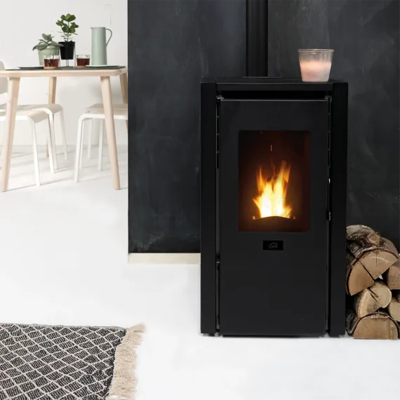 De Stavanger brandt op efficiënte pelletkorrels. Dit leidt tot een schone verbranding met weinig rookontwikkeling. De kachel voldoet hiermee aan de EcoDesign wetgeving. De warmte wordt via het luchtrooster aan de bovenkant van de pelletkachel door de woning verspreid. Met een vermogen van 5,8 kW is de kachel geschikt om ruimtes tot wel 145 m3 te verwarmen. De pelletkachel heeft een modern design met een strakke zwarte afwerking. Hierdoor is het een echte eyecatcher! De vlammen bewonder je door het kijkvenster aan de voorkant van de kachel. Daarnaast is de gebruiksvriendelijke Stavanger gemakkelijk te bedienen. Met het bedieningspaneel stel je de thermostaat zo op de gewenste temperatuur in én de rest gaat vanzelf! Dankzij de meegeleverde Wi-Fi module is het zelfs mogelijk om de kachel met een app te bedienen. Belangrijkste voordelen Afmetingen: 76 x 42,7 x 44 cm (hxbxd) Warmtecapaciteit: 5,8 kW Geschikt voor ruimtes tot 145 m3 Rendement: 93,3% Tankinhoud van 11 kg; 19 branduren