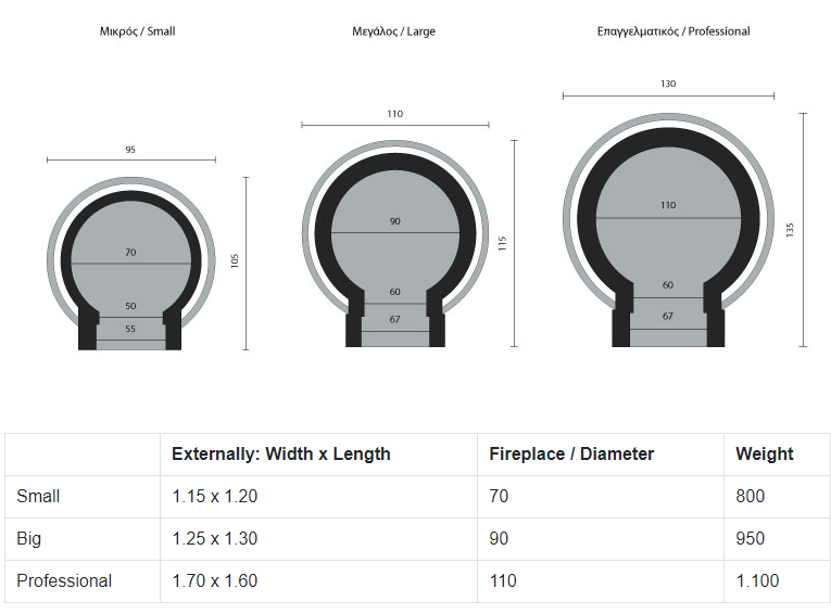 Dit is een traditionele Griekse pizzaoven. De ovens van Sxistolithos worden in Griekenland met de hand gemaakt en afgewerkt. De oven is gemaakt van vuursteen en vulkanische materialen. Het onderstel dat zichtbaar is op de afbeelding is afgewerkt met onregelmatig geplaatste gele stenen, wat zorgt voor een mooie traditionele look.
