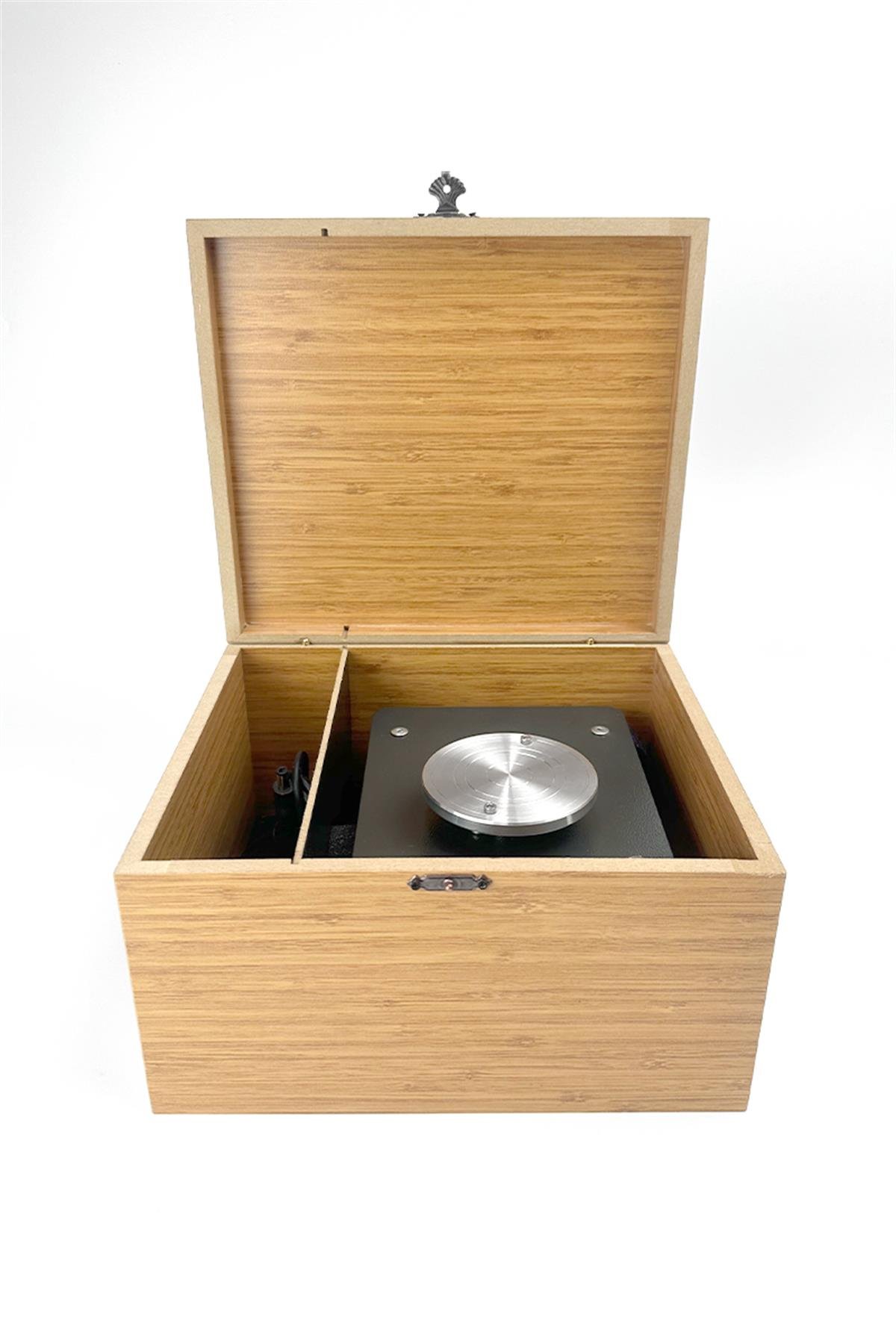 Deze mini draaischijf combineert verrassend goede prestaties met een uiterst compact design, waardoor je overal eenvoudig aan de slag kunt.
