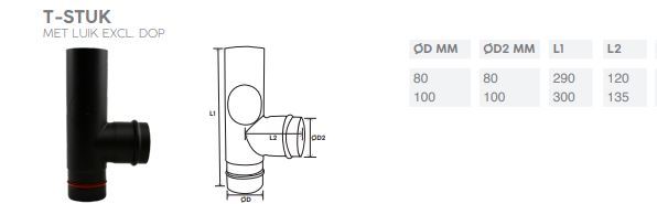 Rookkanaal pellet kachel 100mm staal T-stuk met luik