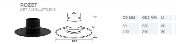 Rookkanaal pellet kachel 80mm staal rozet met aansluitflens