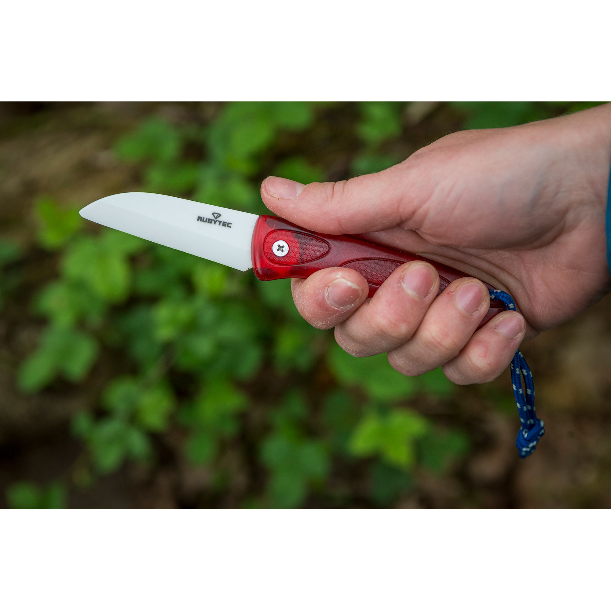 Ceram Foldable is een ultra-lichtgewicht mes dat makkelijk in een jas- of broekzak past, gemaakt van keramisch materiaal en voorzien van een handig ophangkoord. Keramische messen blijven langer scherp dan staal, zijn hygiënisch, worden niet aangetast door zuur, olie of zout en zorgen dat fruit niet verkleurt. Geen wonder dus dat deze messen steeds populairder worden. Het keramische materiaal (Zirkonium Oxide) wordt qua hardheid alleen door diamant overtroffen en dit geeft de messen uitstekende snij-eigenschappen en maakt ze zeer hygiënisch. Dit maakt ze ideaal voor gebruik op de camping of de boot. De Ceram Foldable heeft schroeven van rvs waarmee het vouwmechanisme van het mes strakker of losser gedraaid kan worden.