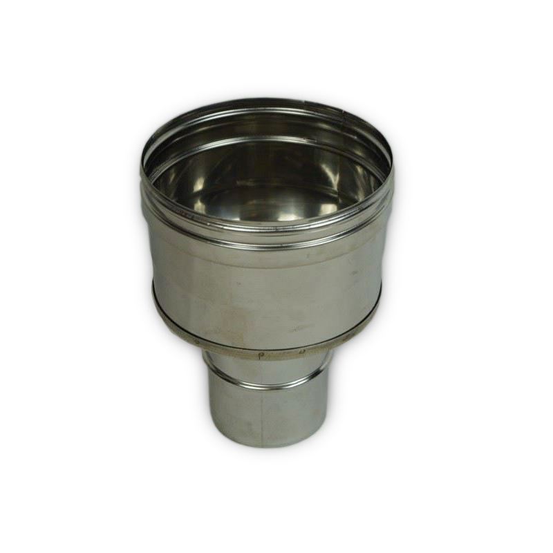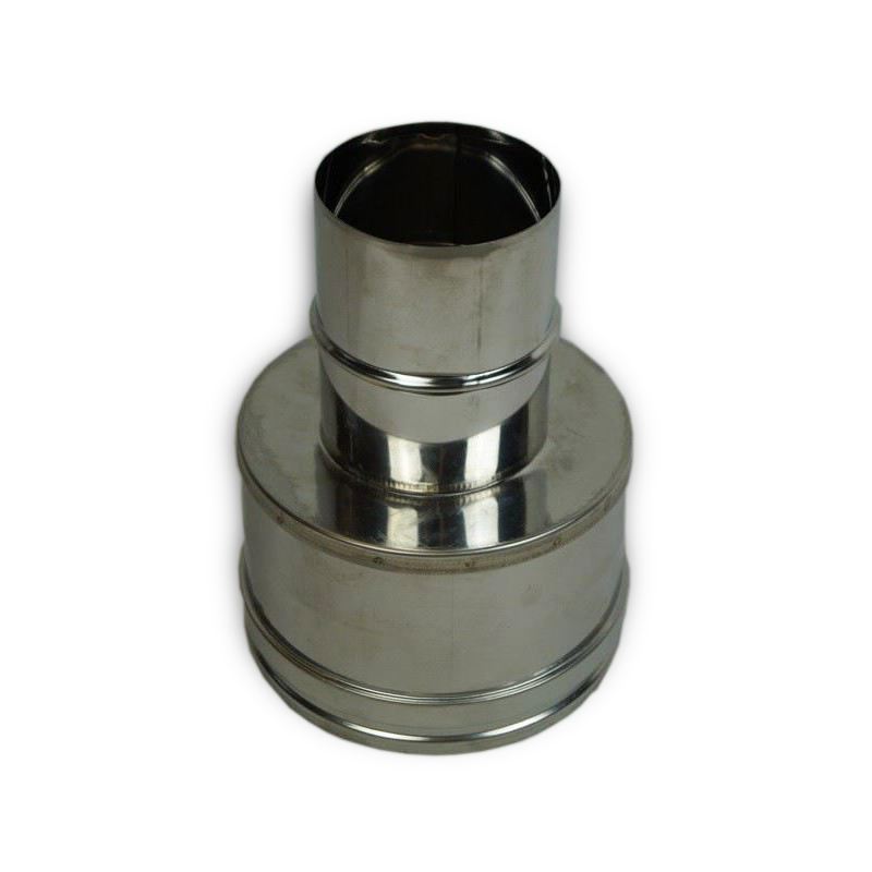 RVS verloopstuk voor een enkelwandig rookkanaal van Ø110 naar Ø130.